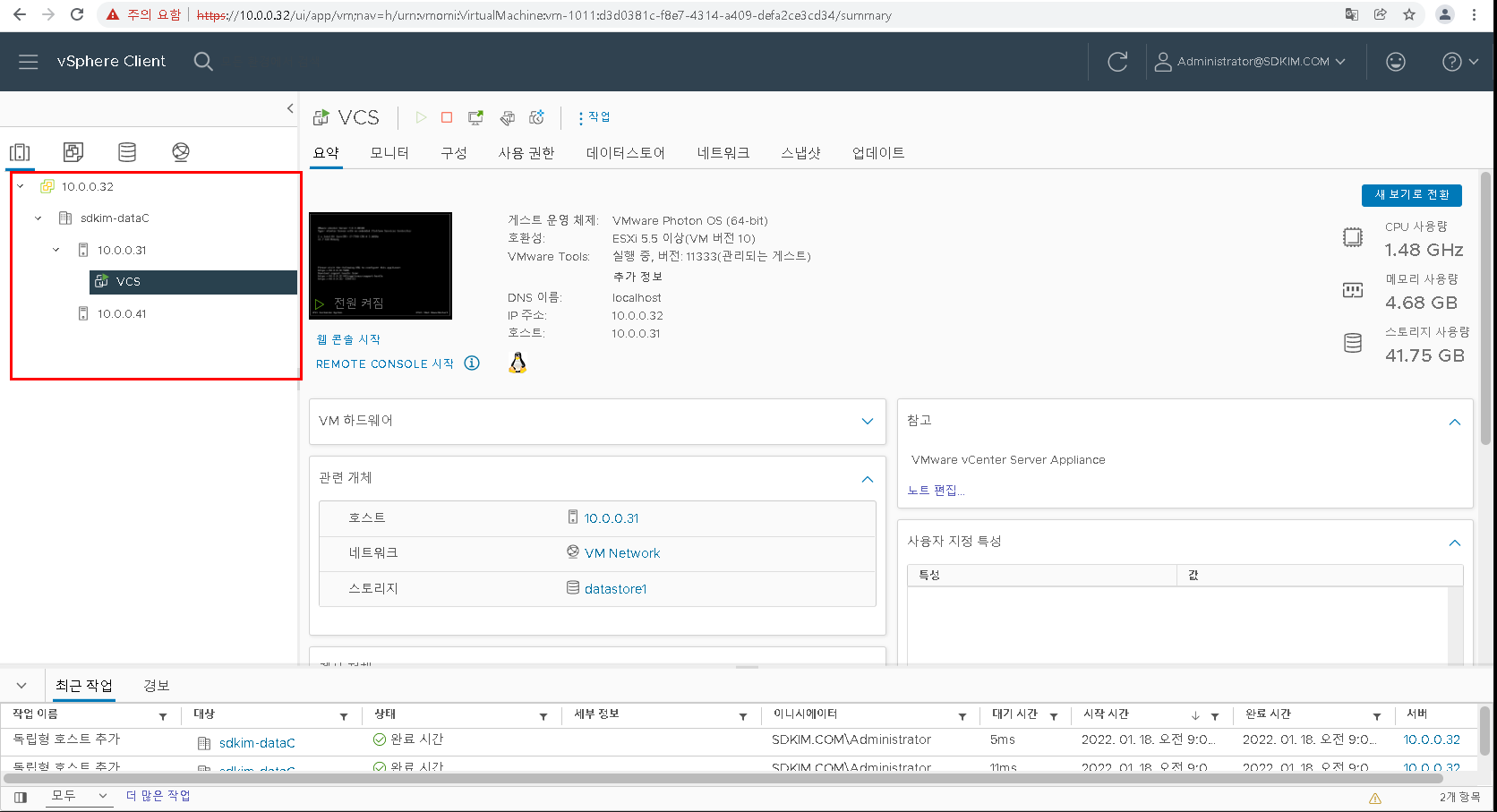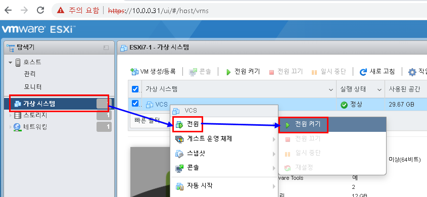 2.2.1. vCenter VM을 기동하기 위해서 PowerOn