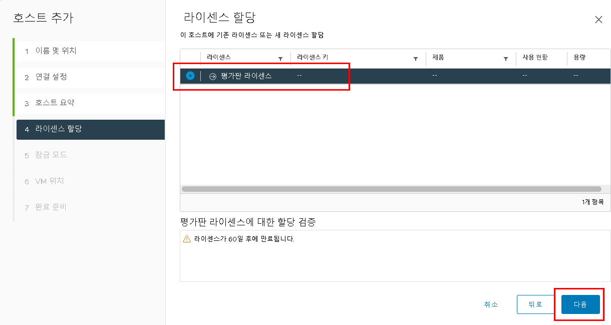 어제 ESXi Host 1대를 구성해서 vCenter를 ESXi에 VM형태로 구축을 했으니 Host 1대는 존재합니다.