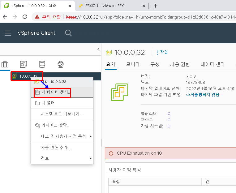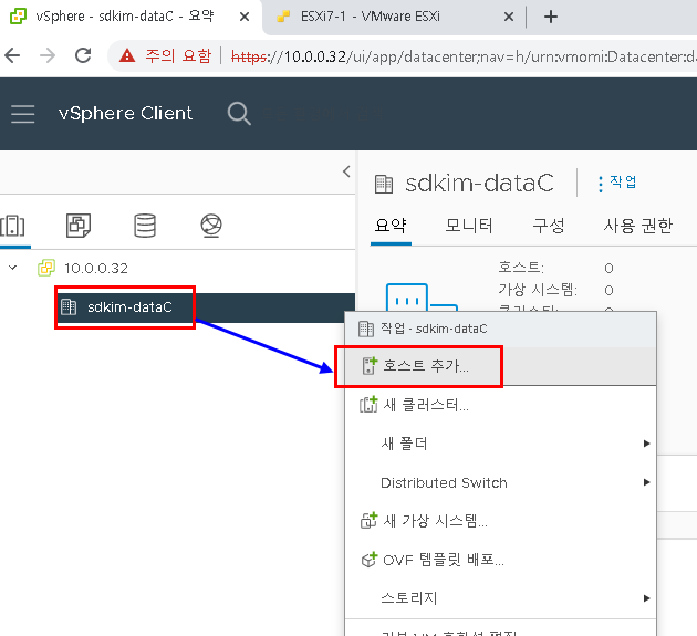 다수의 ESXi를 관리하기 위한 vCenter를 구성했으니 이제 ESXi 추가작업을 진행하려 합니다.