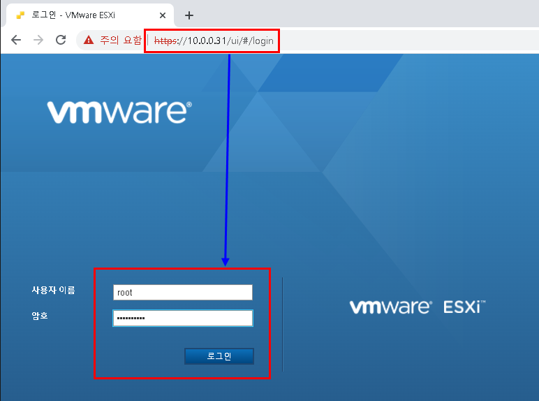 2.1. vCenter가 설치된 ESXi Host에 웹브라우저를 통해 접속