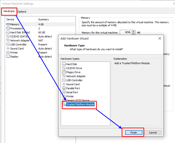 TPM Module 로 구성합니다.