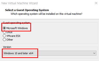 1. 우선 Guest 운영체제는 Windows 10 and later x64 선택