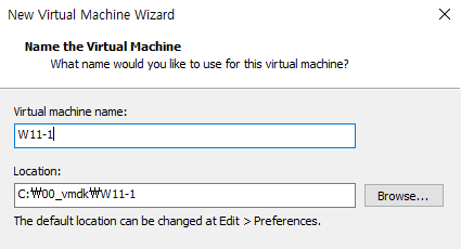 2. 가상머신의 이름은 W11-1 로 (머든 자유롭게)