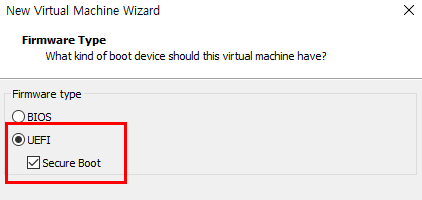 3. Firmware는 반드시 UEFI -> Secure Boot 체크 합니다. Windows 11 최소 사양 입니다.