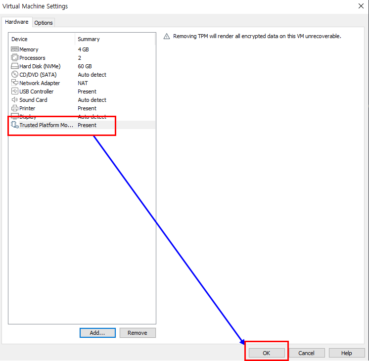 8. TPM Module 확인 후 OK