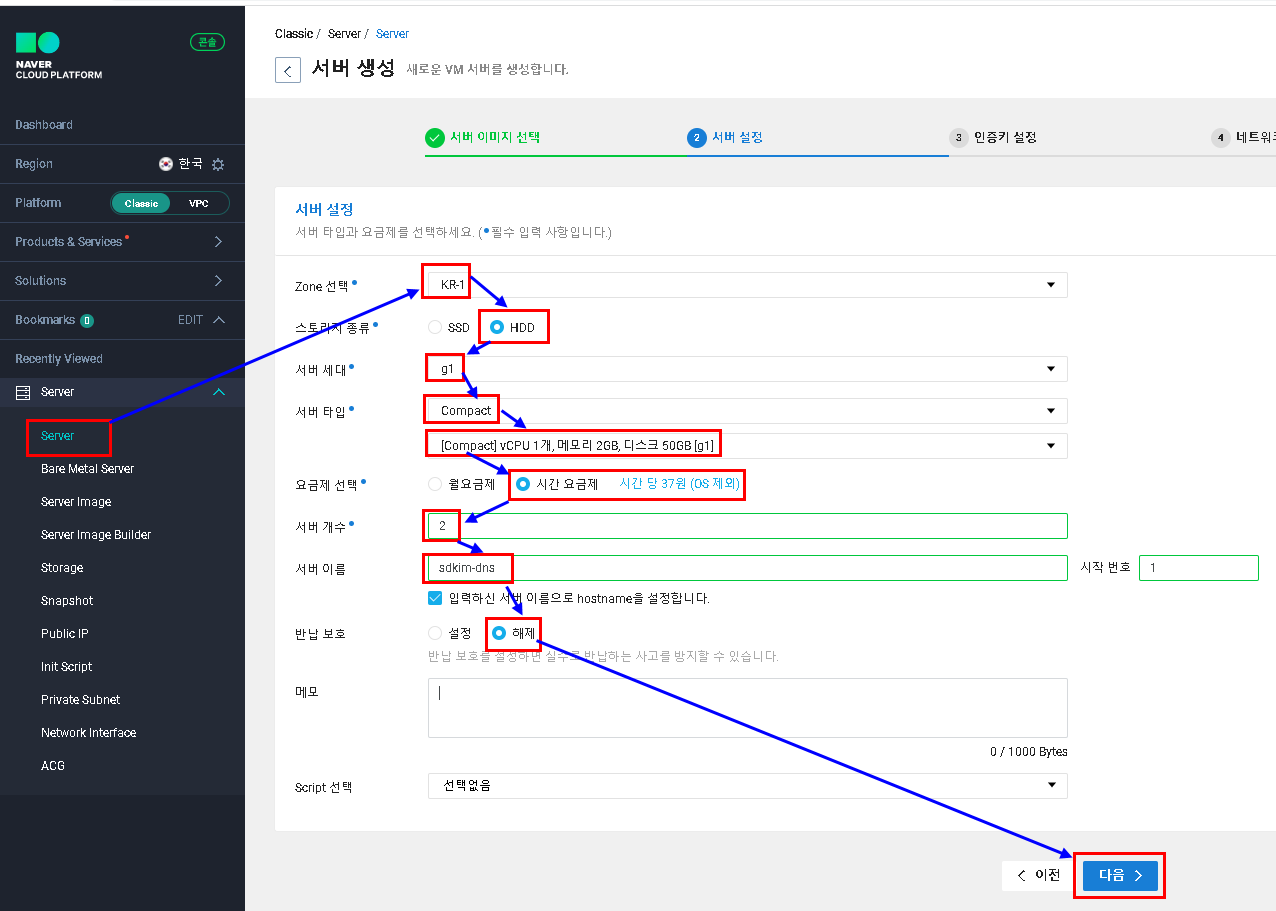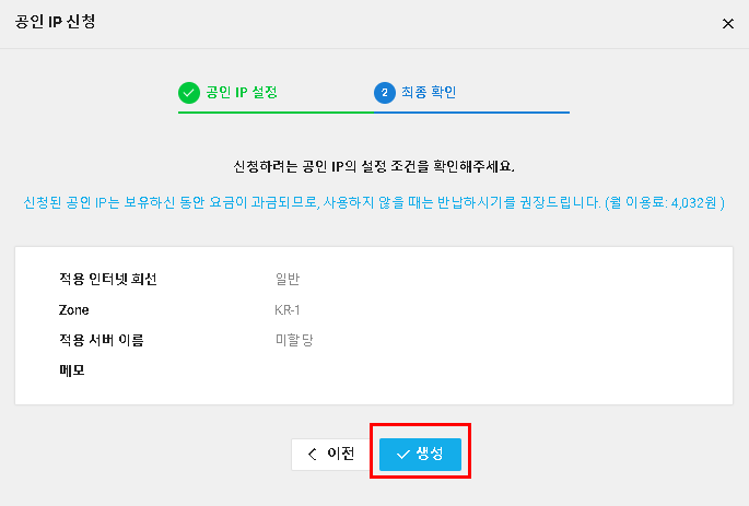 10.2. Zone : KR-1 (반드시 가상머신과 동일한 Zone 선택)