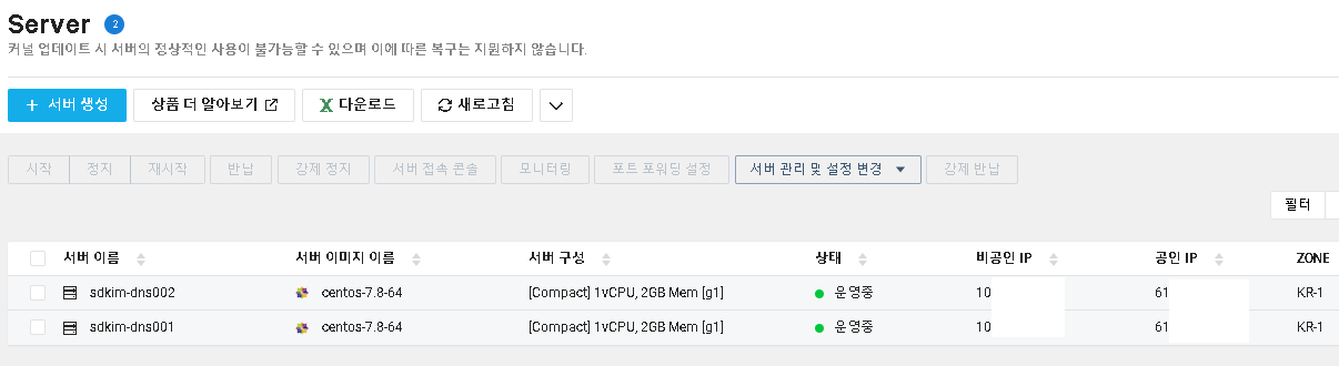 5.6. 서버 개수 : 2 ( 실습용 서버 2대 )
