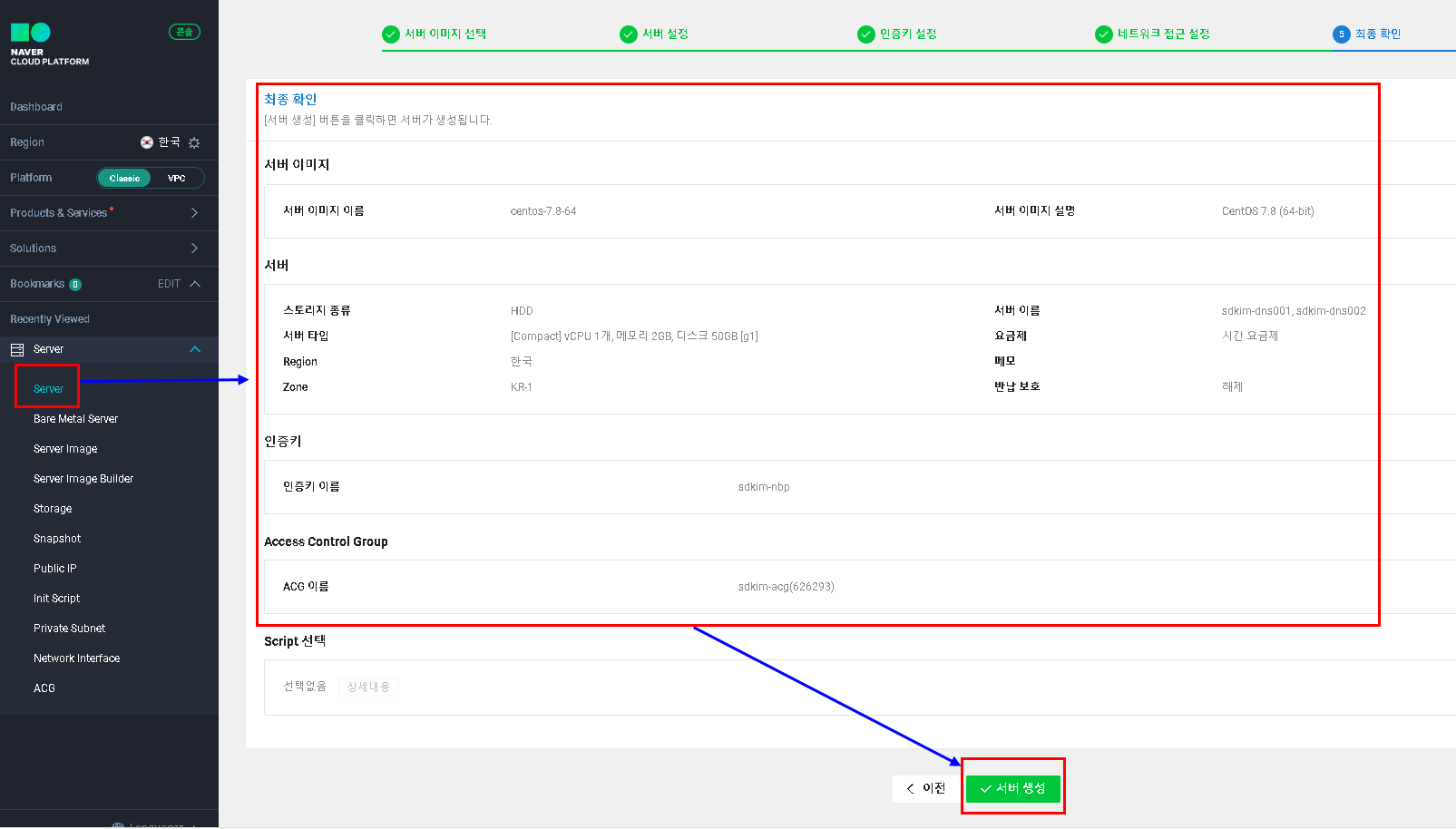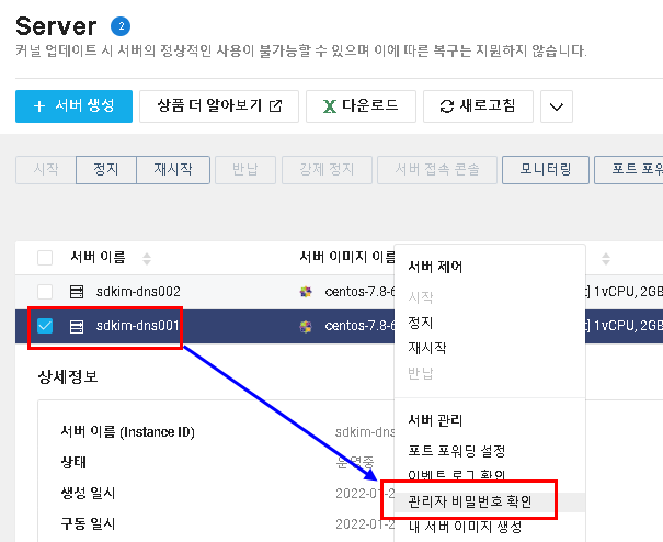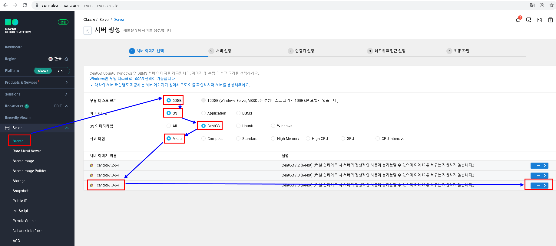 4.5. 서버 이미지 이름 : centos-7.8-64