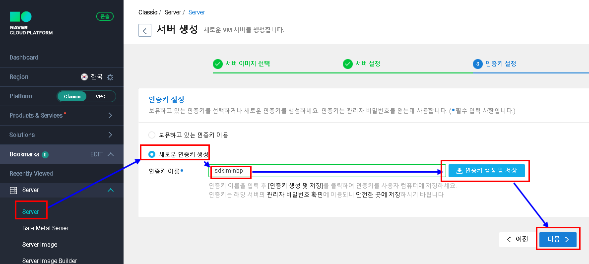 17.1. 이전 6. 에서 생성한 인증키 선택