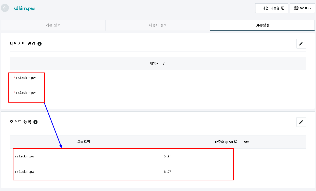 2.3. 네임서버 변경 : 기존 구입 사이트의 네임서버 IP를 Cloud상의 Public IP로 변경