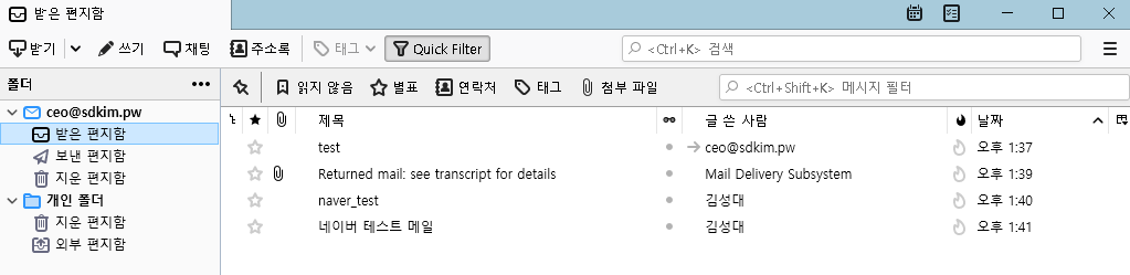 11.1. 썬더버드를 Host PC에 설치한 후 Test