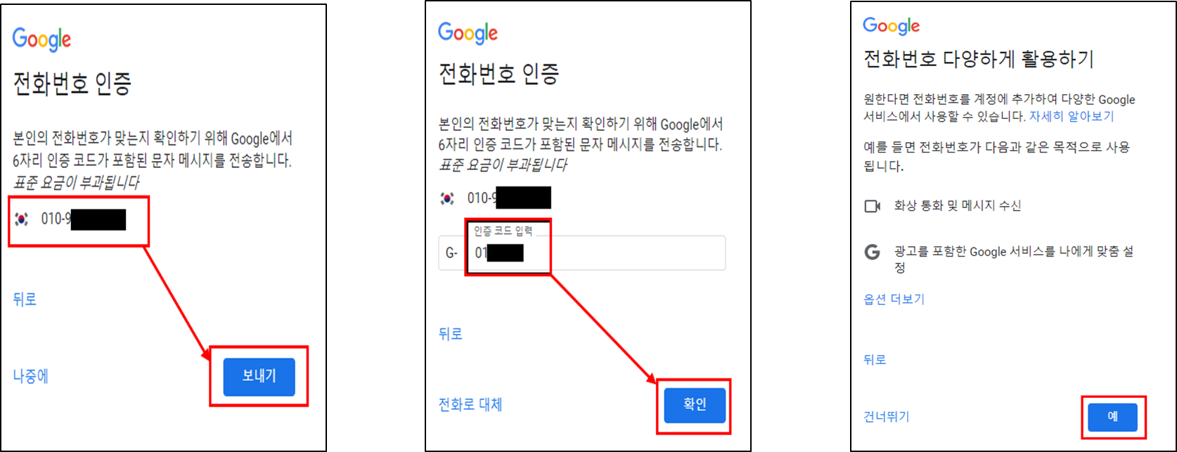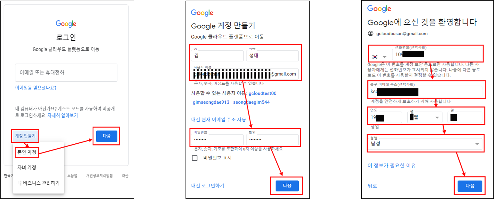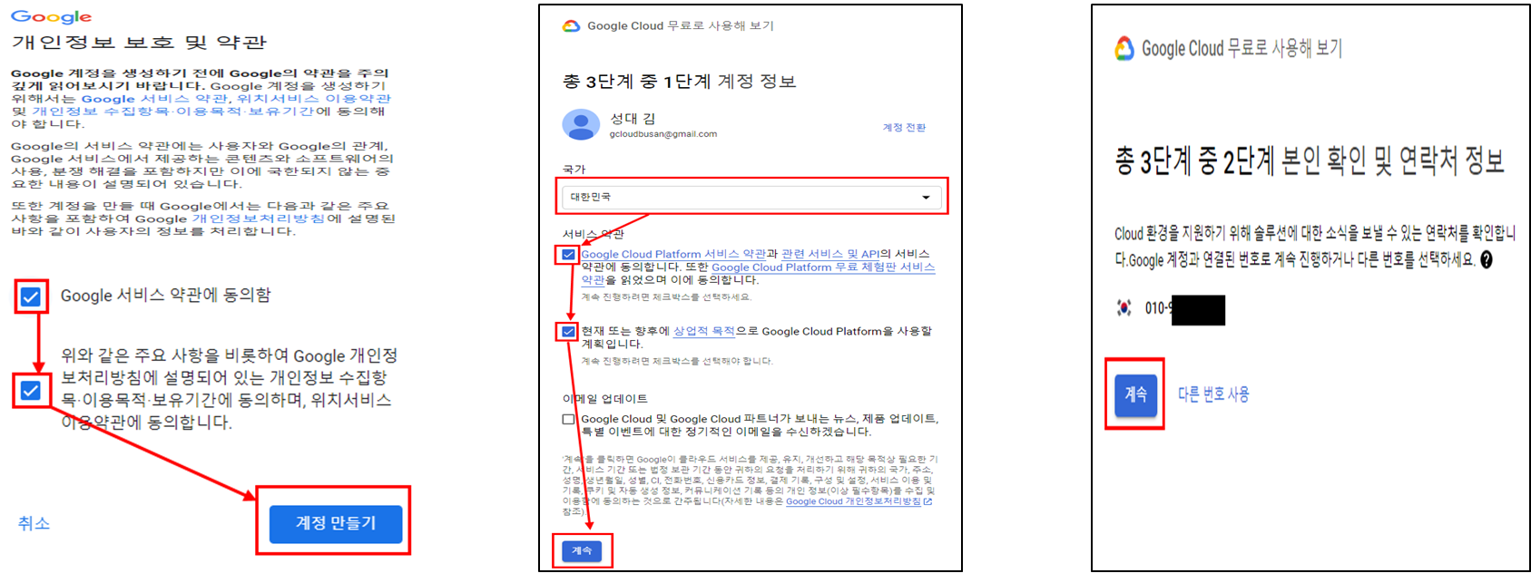 2.1. 계정 만들기 -> 계정 정보 입력 -> 전화번호 입력
