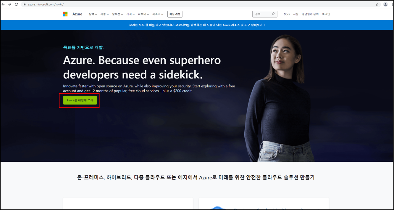 1.2. 화면 중앙의 "Azure 체험해 보기" 클릭