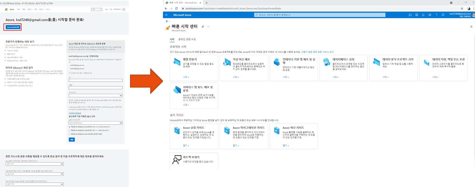 이제 Azure로의 긴 여행을 떠나 봅니다.