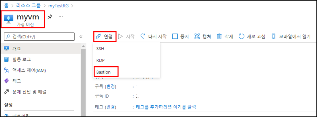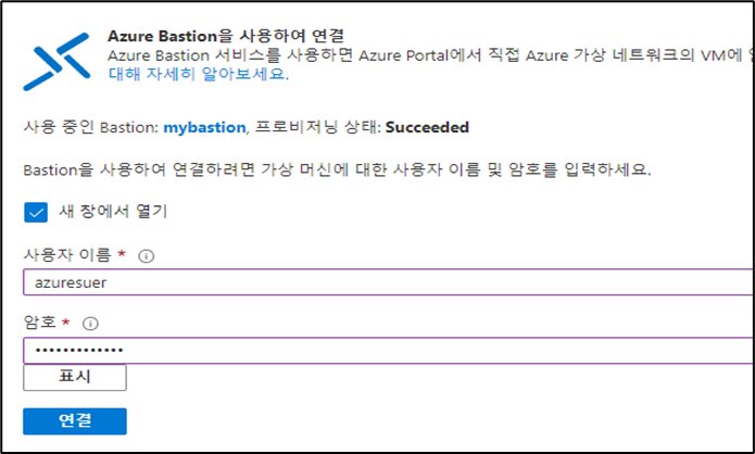4.3. 가상 머신 연결 -> "Bastion" 선택