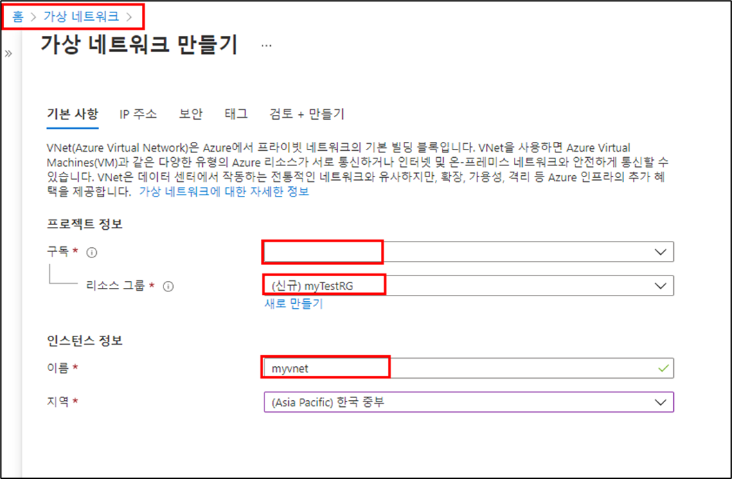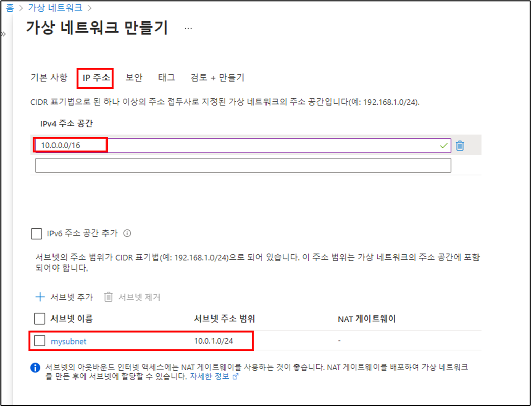 1.3. Virtual Network CIDR Block과 Subnet 생성