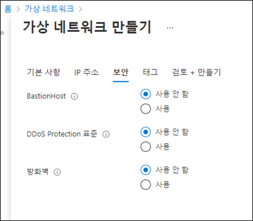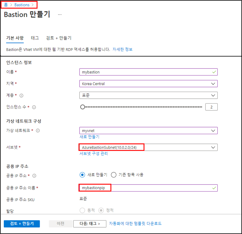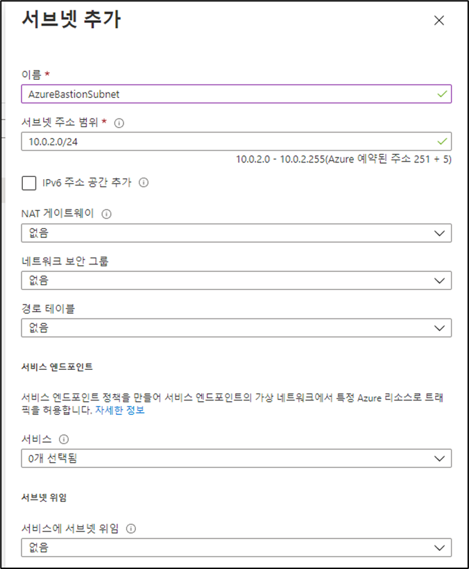 2.3.1.2. Subnet : AzureBastionSubnet (지정된 이름임)