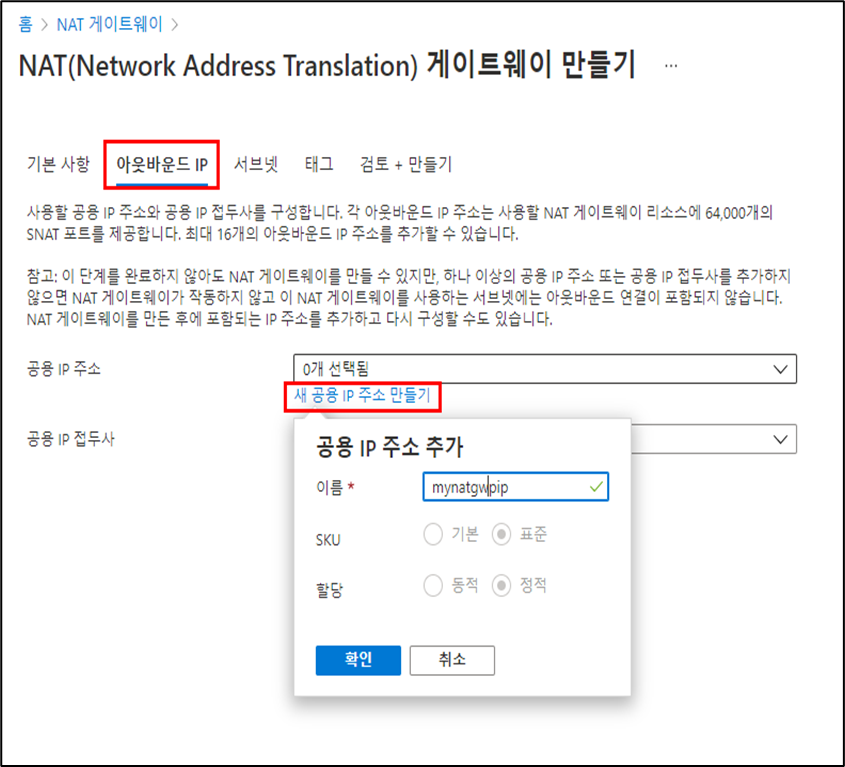 5.2.2. NAT 게이트웨이 이름 : mynatgw