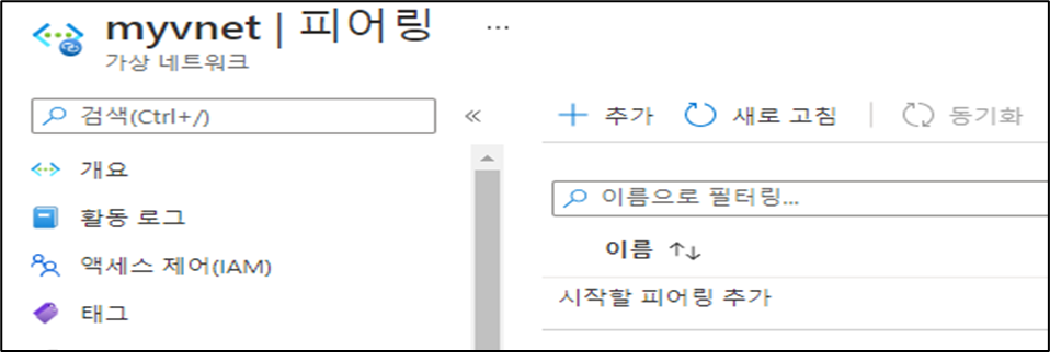 6.2.1 myvnet 선택 후 추가 -> 피어링 추가