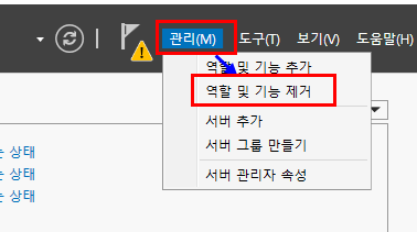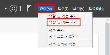 1.1. 서버매니저 우측 상단 "관리" -> "역할 및 기능 제거" 클릭