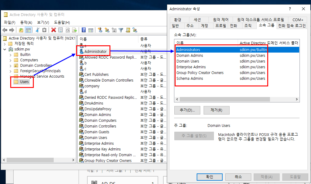 1.6.2. 포리스트의 Root 관리자 역할을 최초 생성한 DC에서 확인합니다.