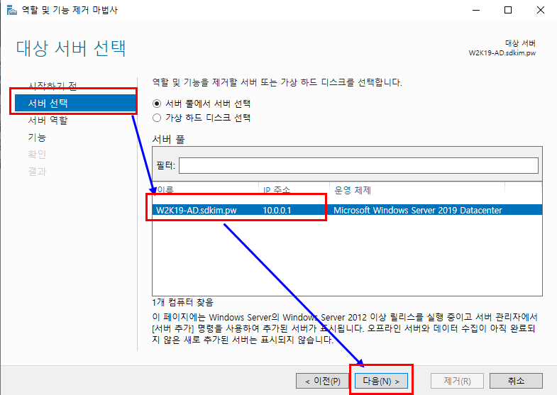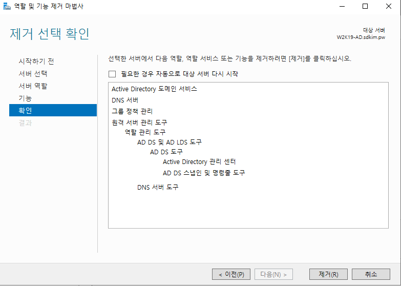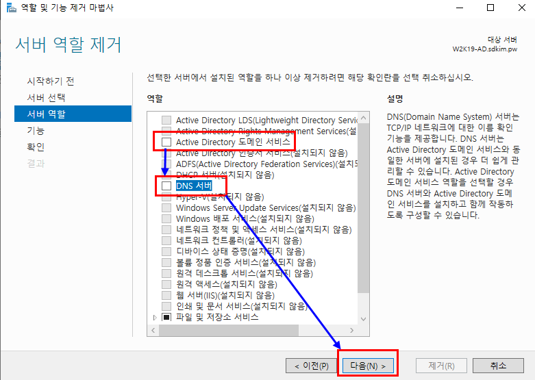 1.8.2. 단 DNS 서버는 제거되지만 역할의 DNS Service는 제거되지 않으니 유의하세요.