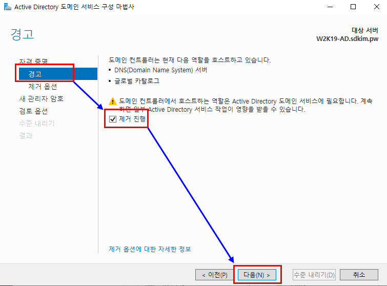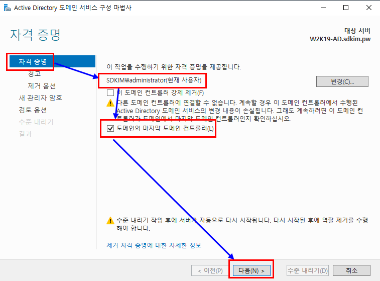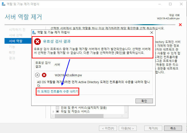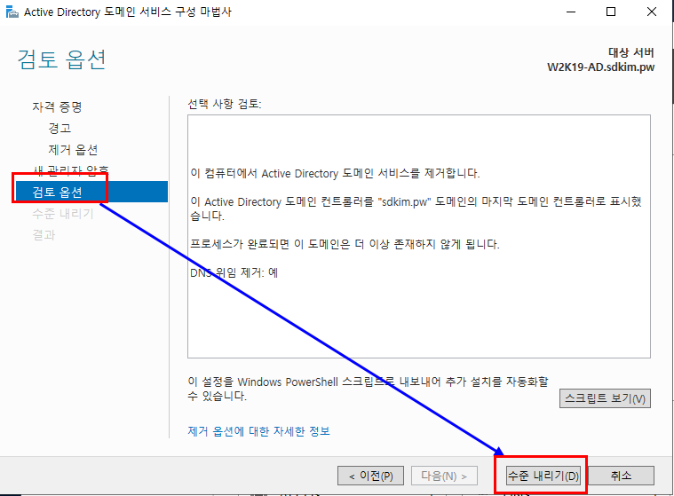 1.5.2. " 이 도메인 컨트롤러 수준 내리기" 클릭