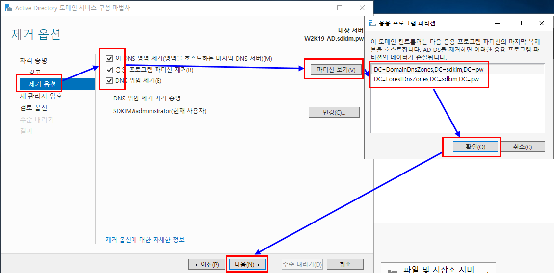 그렇지 않으면 다시 DC를 생성할 때 같은 Domain을 사용하지 못하거나 생전 보도듣도 못한 오류를 만나실 수 있기 때문입니다. 그만큼 Active Directory는 민감합니다.