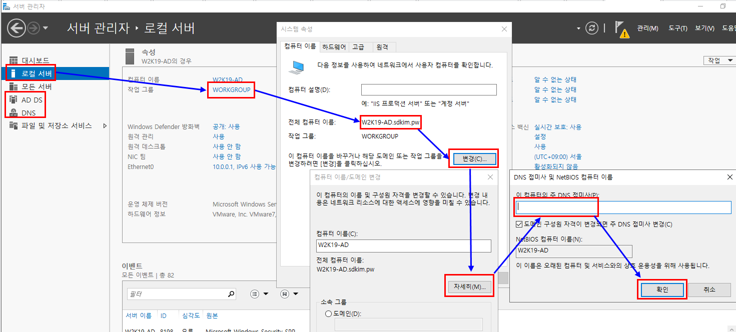 2.1.5. 이 컴퓨터의 주 DNS 접미사 : 기존 이름 삭제 후 확인 클릭