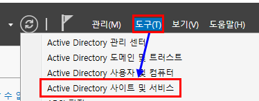 4.2.1. 첫번째 서버의 "Active Directory 사이트 및 서비스"