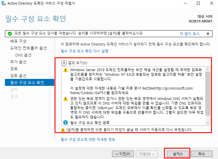 3.1.1. 동일 Domain에 Domain Controller를 추가하는 작업임으로 DC로 승격시켜야 합니다.