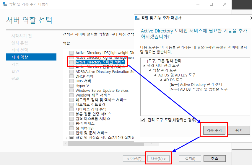 2.1.1. 두 번째 서버에도 역시 ADDS를 설치합니다. 설치 후 승격 작업을 해야 합니다.