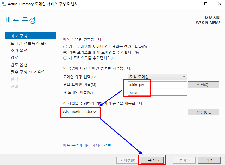 그럼 이번에는 자식 도메인 즉 Child Domain 만들기를 구성해 보도록 하겠습니다.
