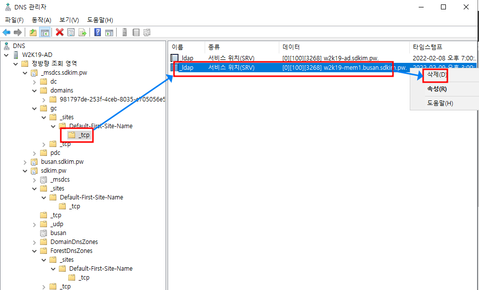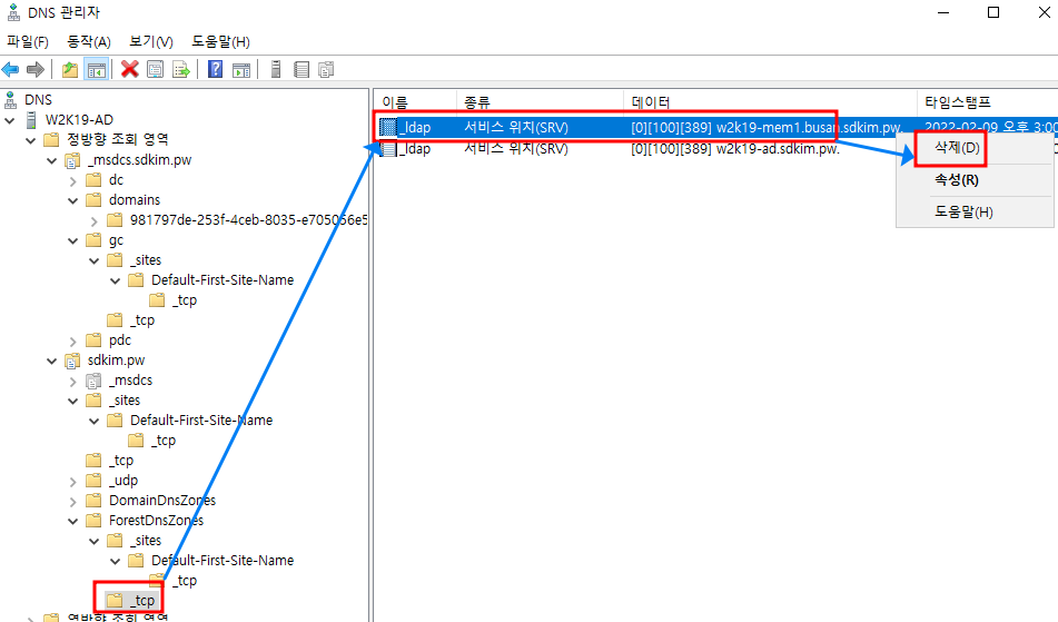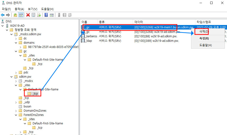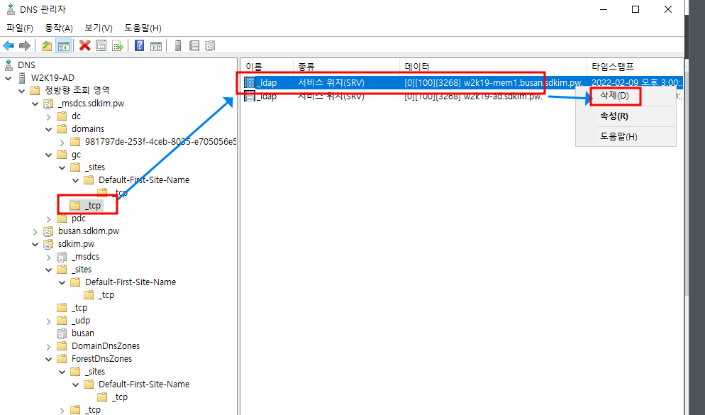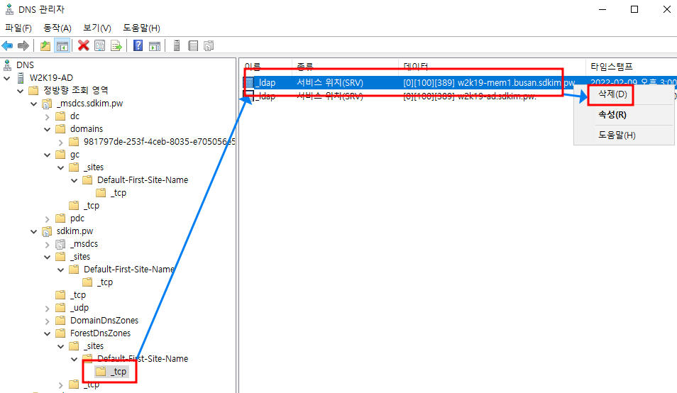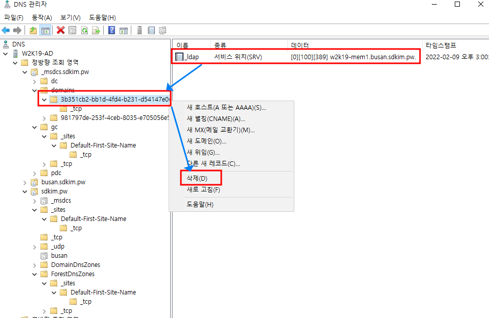 내용이 길어 챕터 1 에서는 DNS 정리, 챕터 2에서는 metadata cleanup 명령어를 이용한 정리를 확인합니다.