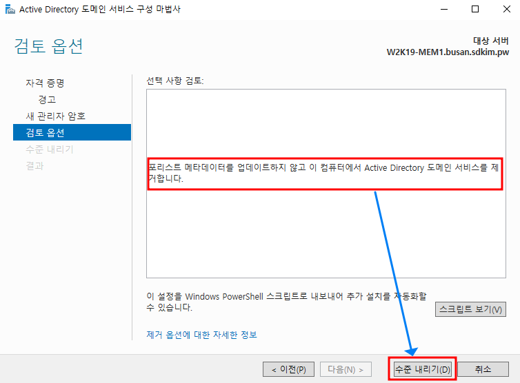 2. 강제적인 DC 내리기 절차 : 아주 이기적인 명령어 입니다. 예전 dcpromo /forceremoval