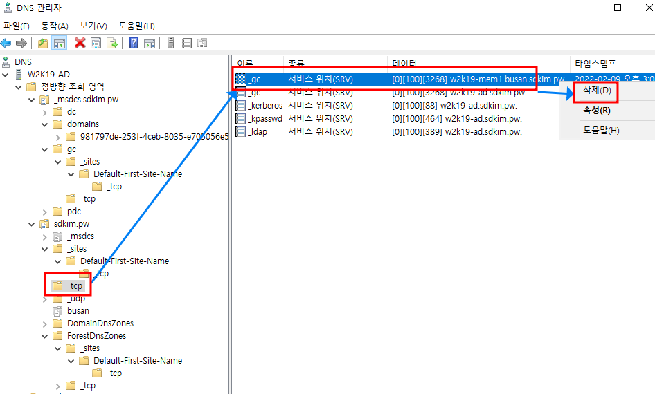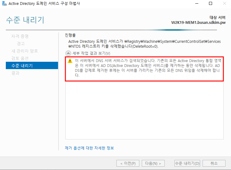 내용이 길어 챕터 1 에서는 DNS 정리, 챕터 2에서는 metadata cleanup 명령어를 이용한 정리를 확인합니다.