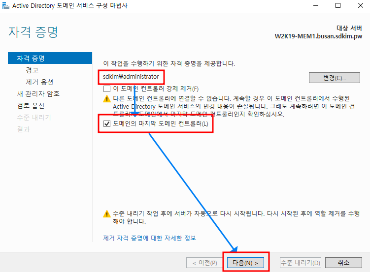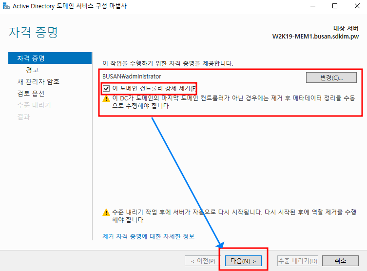 2. 강제적인 DC 내리기 절차 : 아주 이기적인 명령어 입니다. 예전 dcpromo /forceremoval