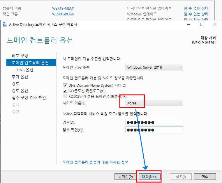 당연히 이전과 동일한 이름으로 설치를 진행합니다.