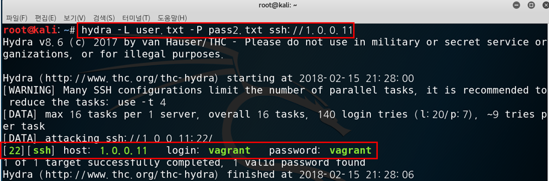 5. Hydra를 이용한 SSH Attack