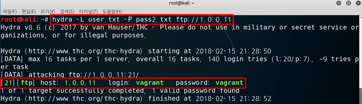6. Hydra를 이용한 FTP Attack