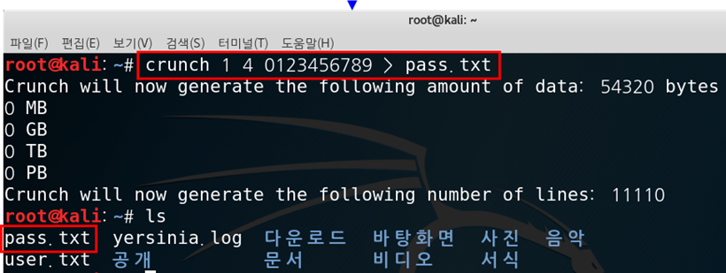 4.4.1. crunch를 이용하여 3글자의 모든 string을 포함하는 패스워드 파일 생성