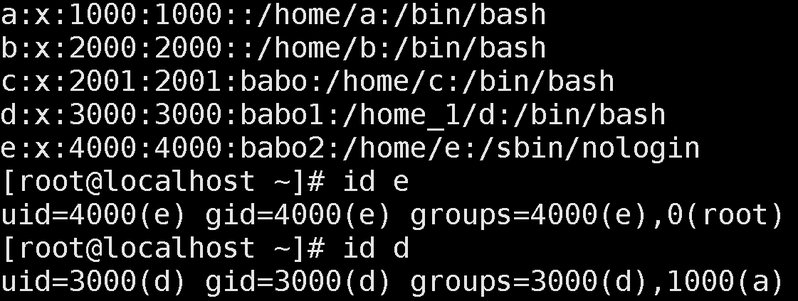 # useradd -u 3000 -G 0 -c babo -d /home_1/a -s /bin/false a