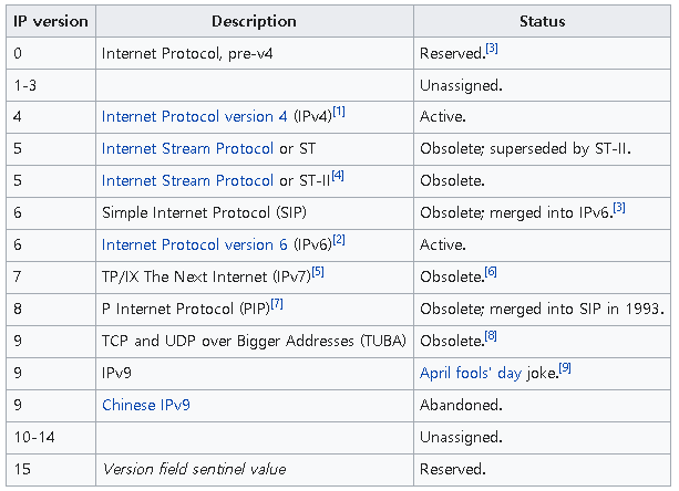 4.1. IP Address는 버전이 IPv0~IPv15까지 존재함.
