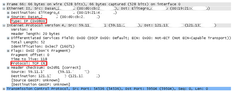 4.4.2. IPv4의 경우 0x04로 설정 (IP Address는 32bit, 4Byte)