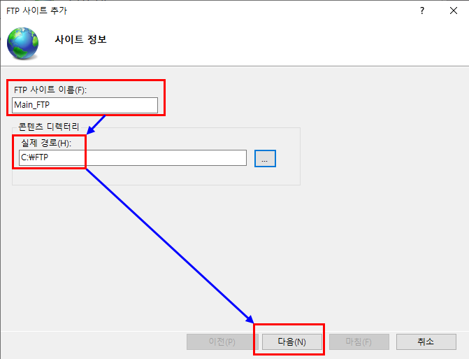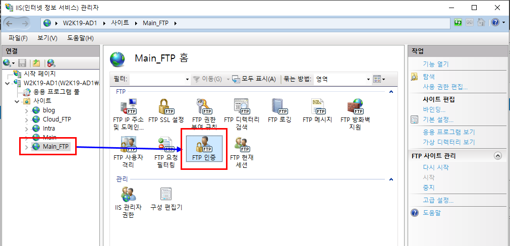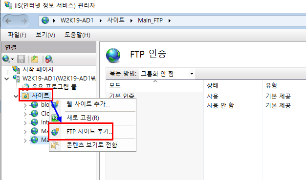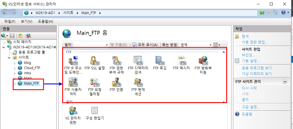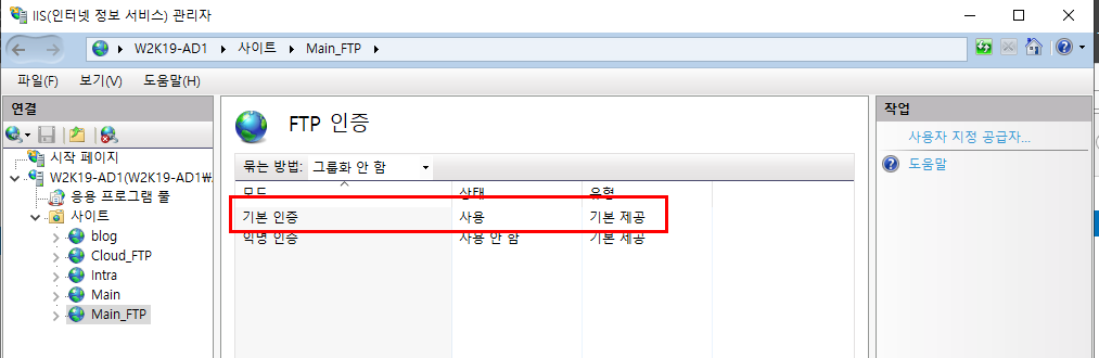 Windows Server 2019를 이용한 FTP 사용자 격기 구성입니다.