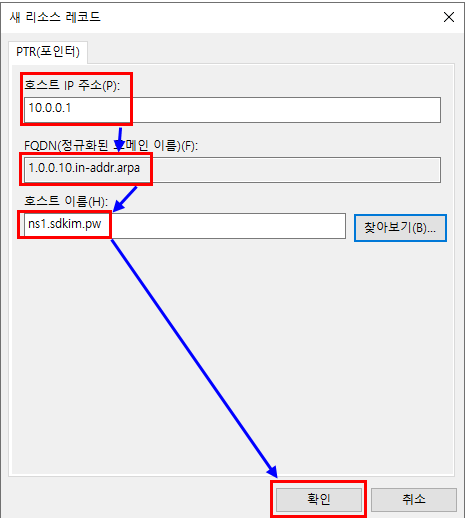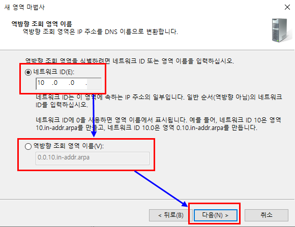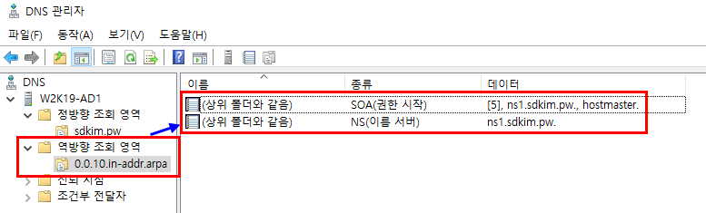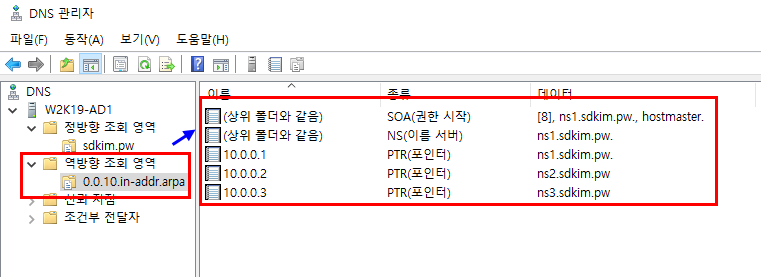 역방향 조회 영역은 IP Address를 Hostname으로 변환을 해주는 기능을 수행합니다.